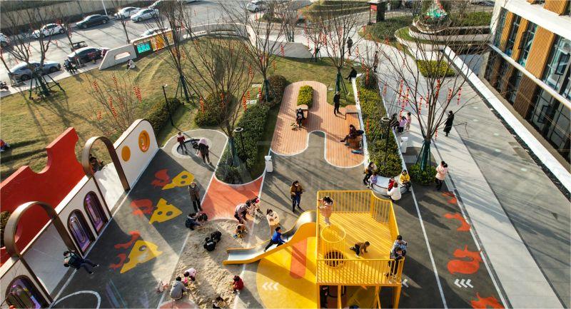 孩子们自由的穿梭在乐园之中。嬉闹,游戏的各种美好的场景不再只是在设计师脑海中的美好想象,为儿童创造更多乐趣理念有一次有了落地实践的机会。